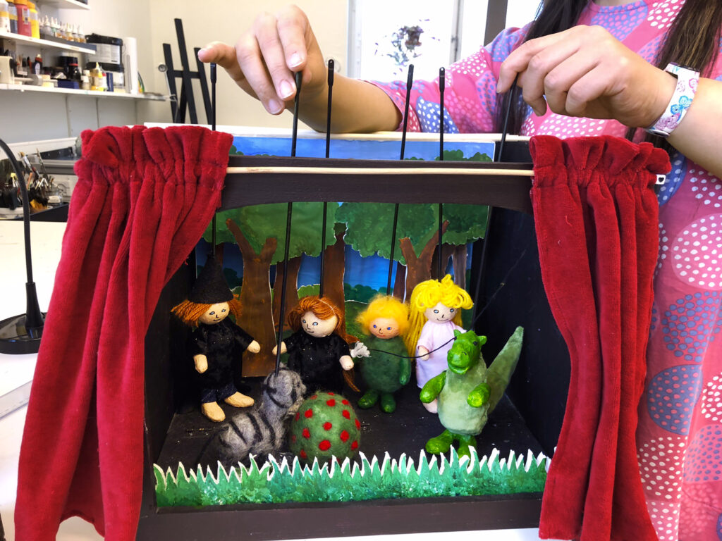 En deltagare har gjort sin alldeles egna dockteater! Skapad i Ateljén i Cedergruppen Liljeholmen.