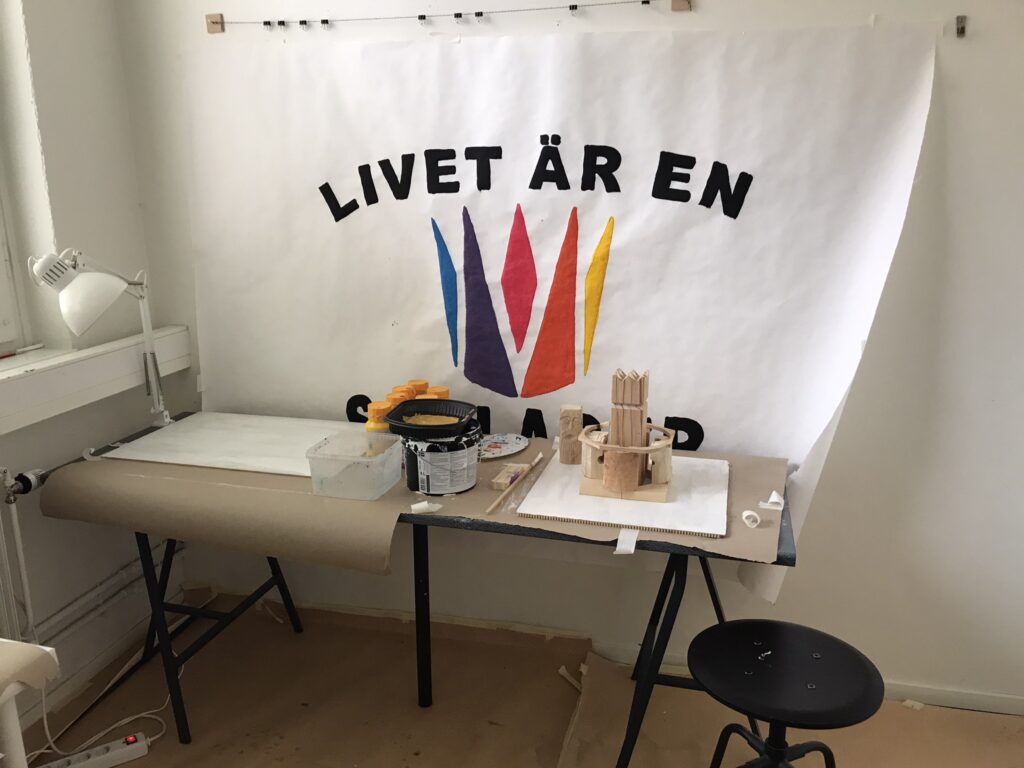 I Liljeholmen har vi många utrymmen för skapande. På bilderna kan ni se vad som kallas ”lilla ateljén”!